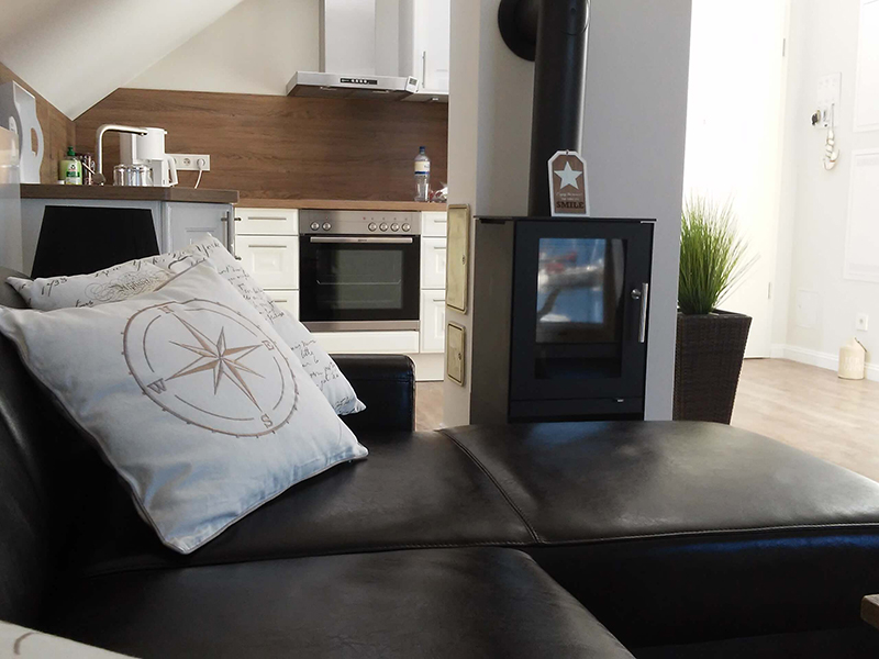 Die Ferienwohnung ist modern, hochwertig und mit viel Liebe zum Detail eingerichtet. Die stilvolle Ausstattung sorgt für ein angenehmes Wohnambiente und erholsame Tage direkt am Yachthafen. Große Fenster sorgen für viel Licht, und die geschmackvolle Möblierung schafft eine warme, einladende Atmosphäre mit Qualität und Komfort.